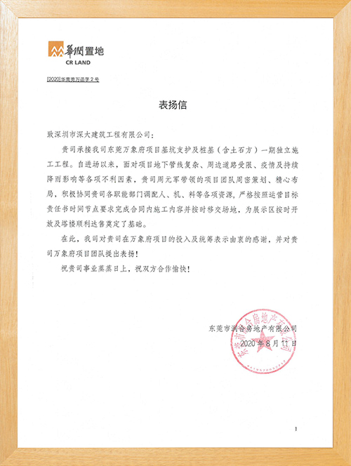 深大建筑以市場為導向,以質量求生存,以安全為保障,以信譽謀發展,深大建筑致力于為各大建設單位提供專業的工程技術及一流的管理服務。公司成立至今,承建的項目遍及深圳、東莞、惠州、珠海、湛江等華南各地,且全部驗收合格。深受建設單位、監理單位的一致好評,深大品牌在業界的影響力和公信力與年俱增。